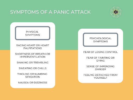 A panic attack is an intense and abrupt rush of anxiety, fear, or terror that heightens and peaks within minutes (from five to 15 minutes or more). Panic attacks can affect anyone. They can be recurring or occasional and may be triggered by stressful events or happen suddenly. They can also be a symptom of mental health or medical conditions (i.e., anxiety, thyroid issues, heart or respiratory problems).