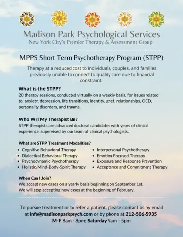 STPP therapists are advanced doctoral candidates with years of clinical experience, supervised by our team of clinical psychologists.